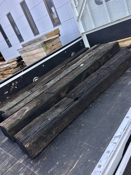 今回は家庭菜園の畑の囲い用に、本物の線路に使用されていた枕木を無償でいただいて自宅に持って帰ってきました。
